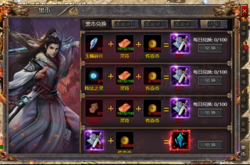 1、开服750天后,开启黑市兑换系统,可以消耗武道相关道具兑换拜帖以及更高阶级的武林装备